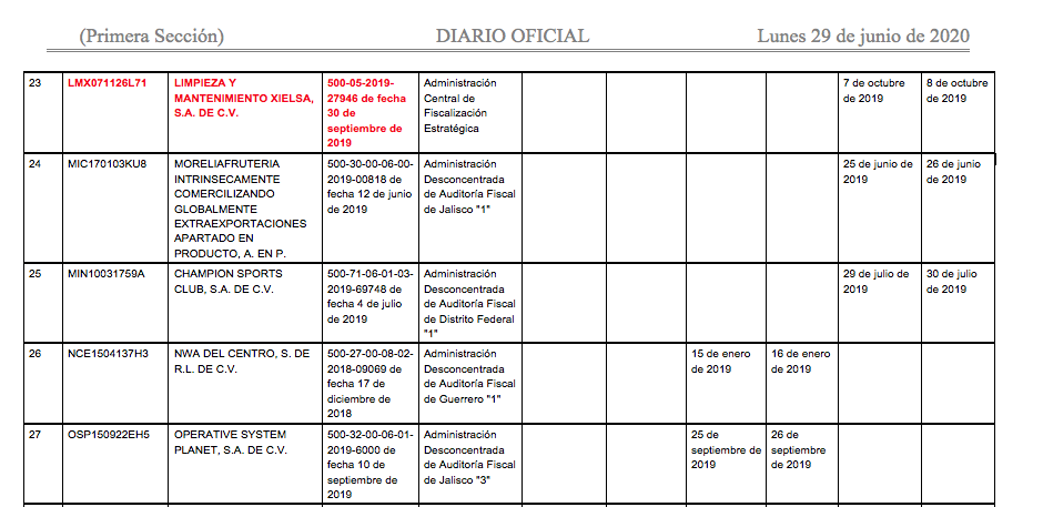 OTRAS EMPRESAS QUE APARECEN EN LA LISTA DEL SAT