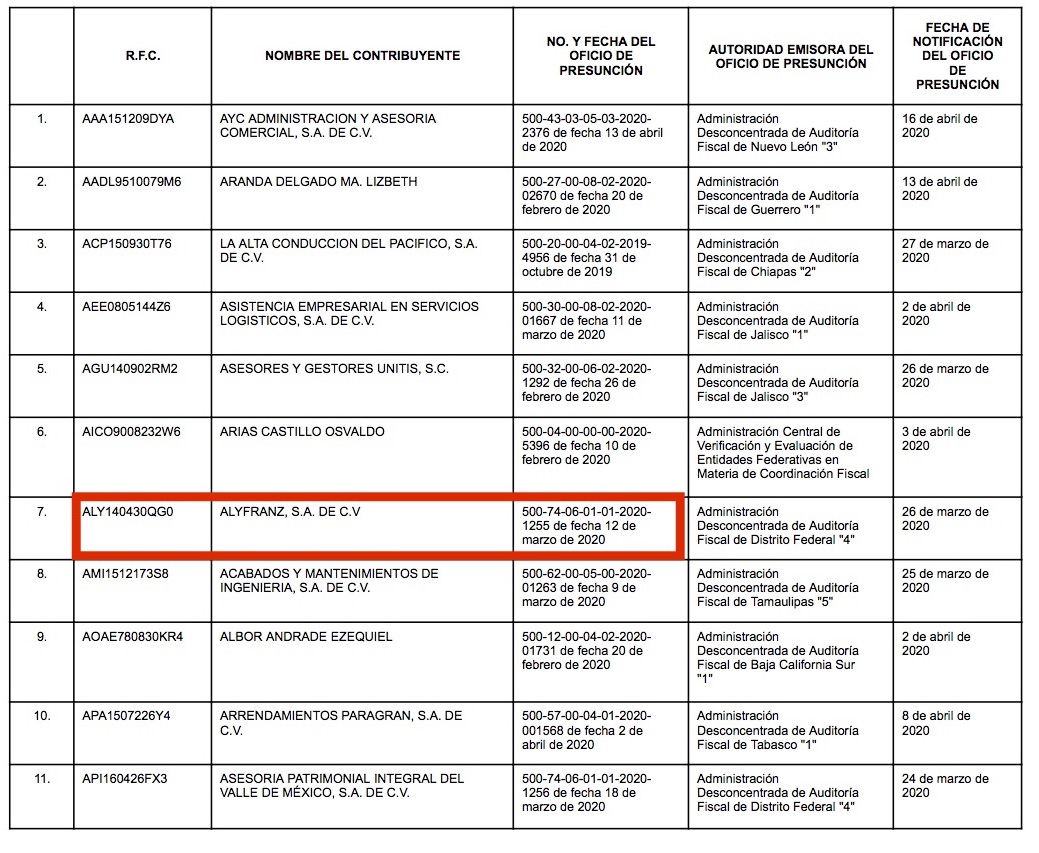 El gobierno del presidente Andrés Manuel López Obrador ha comprado bienes o servicios por más de 280 millones de pesos a 18 proveedores que aparecen en lista de “empresas fantasma” elaborada por el Servicio de Administración Tributaria (SAT).