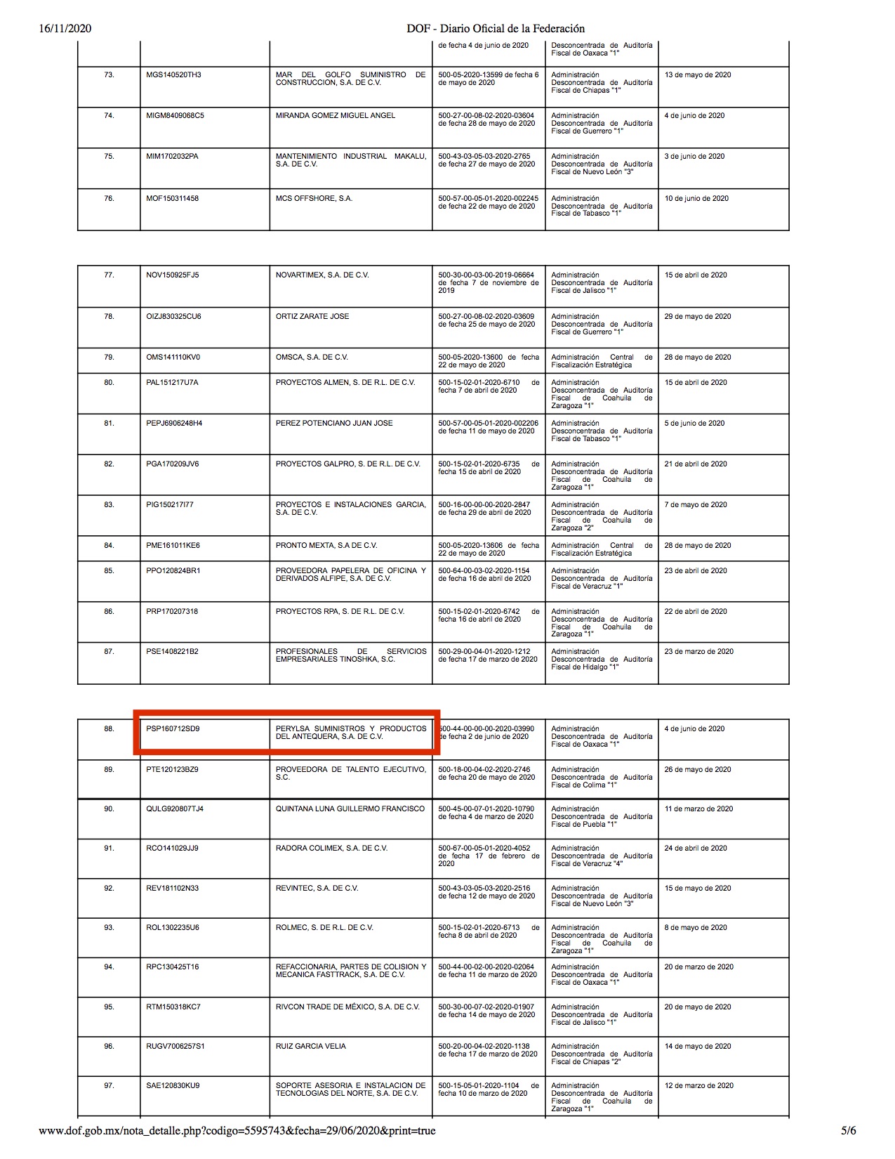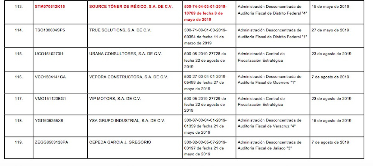 En el listado más reciente del SAT, actualizado a octubre de 2020, Source Toner de México está clasificada por presuntamente haber realizado “operaciones inexistentes”.