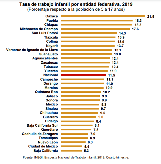 • En Aguascalientes, la tasa de trabajo infantil es de 12.4%, por encima de la media nacional.