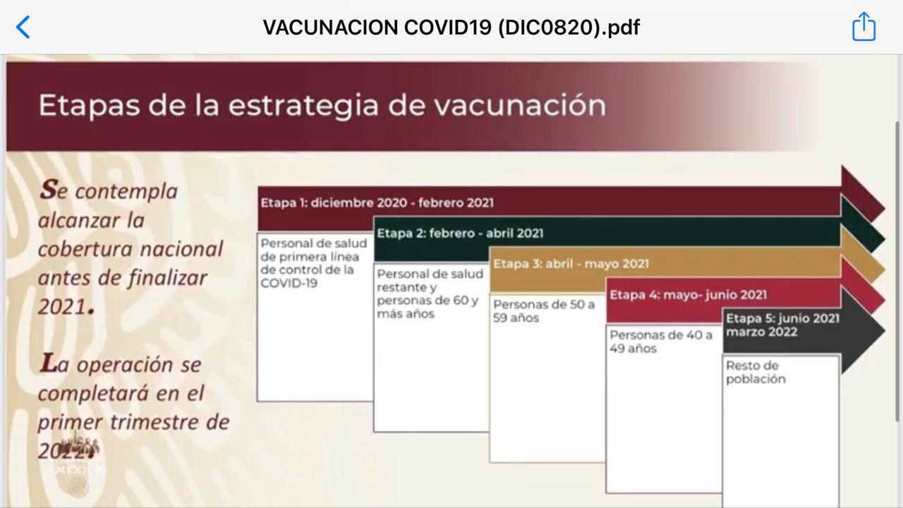 En abril y mayo, se incluiría a personas de 50 a 59 años; los de 40 a 49 años de mayo a junio. Por último, de junio y hasta marzo de 2022, sería vacunada la población menor de 40 años.