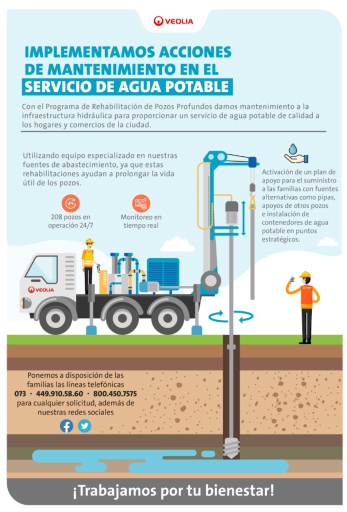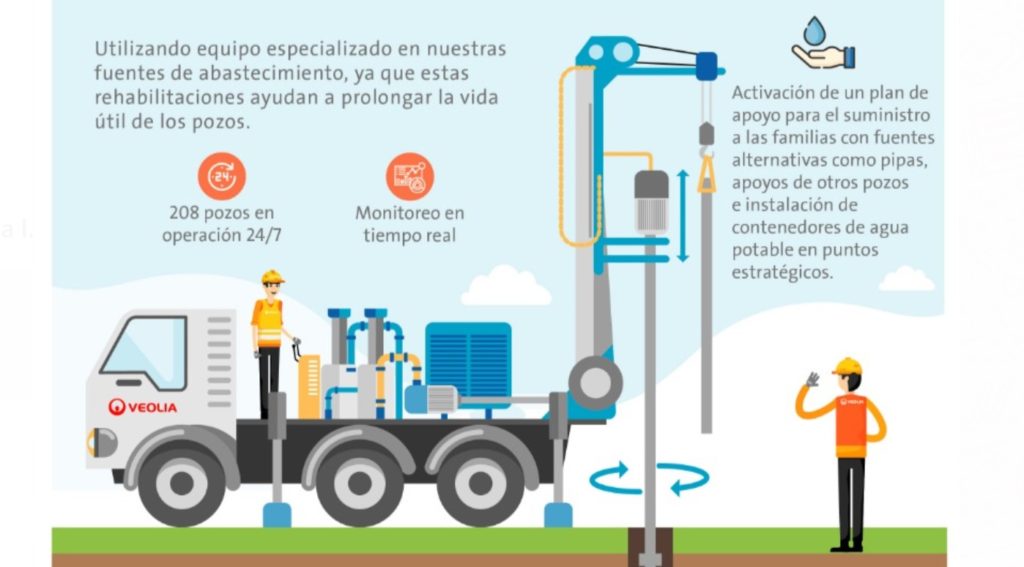 “En Veolia somos sensibles a las necesidades de la comunidad por contar con el suministro de manera oportuna, recordemos que los pozos de nuestra ciudad tienen décadas en funcionamiento y operan las 24 horas, por lo que en una época de contingencia sanitaria, este servicio esencial requiere de inversiones destinadas al funcionamiento de las fuentes que permitan que el agua llegue en condiciones óptimas”, declaró el directivo.