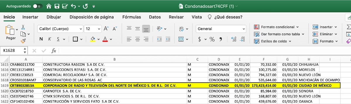 La administración actual también decidió perdonar impuestos por poco más de 173 millones de pesos al corporativo SKY de Grupo Televisa, a través de la razón social “Corporación de Radio y Televisión del Norte de México”.