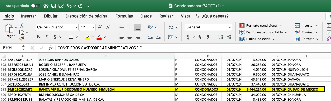 Banca Mifel, señalada por su relación con el “Cártel Inmobiliario” de la Ciudad de México, fue beneficiada con una condonación de 5 millones 464 mil pesos en 2019.