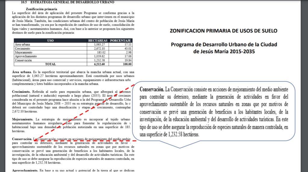 Trasciende que el uso de suelo hasta hace poco estaba reservado para actividades de zona protegida o reserva, siendo parte del municipio de Jesús María.