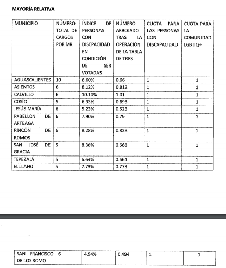 Se expone que la autoridad señala que las fórmulas podrán ser conformada indistintamente por la comunidad de la diversidad o por personas con discapacidad, lo que traería como consecuencia que se pudiera dar el caso de que una fórmula se conforme por una mujer cisgénero con capacidad motriz que rechaza el matrimonio igualitario, por ejemplo. Es decir, pusieron a dos grupos vulnerables en un mismo espacio y con distintas necesidades, al impedir así una verdadera representación política.