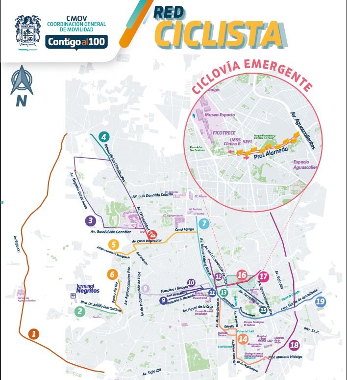 La red de ciclovías de la ciudad de Aguascalientes tiene un nuevo tramo, el cual servirá además como conexión para el resto de rutas. La nueva pista se encuentra en la Avenida Prolongación Alameda, en los alrededores del Corredor Tres Centurias y es una ciclovía emergente, pues se abrirá solo en determinados días y horarios.