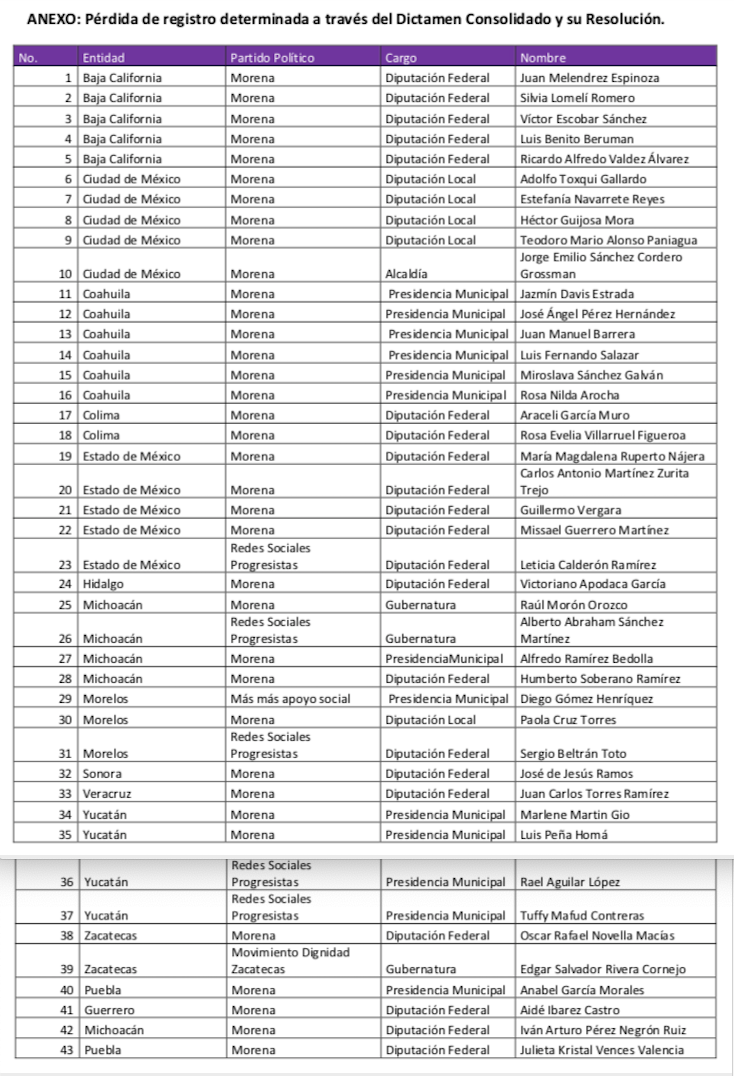 De los 49 eliminados, 42 son de Morena y siete de otros partidos menores. Ninguno del PRI, PAN o PRD.