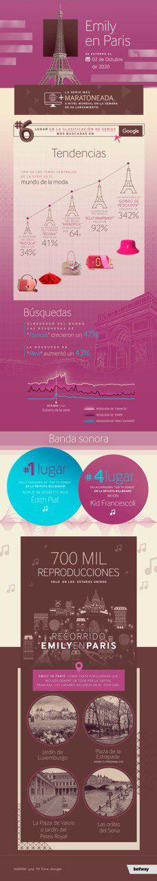 Emily en París se llama la serie que fue la más “maratoneada”, en el planeta, del 2 al 9 de octubre de 2020, es decir, la semana de su lanzamiento.