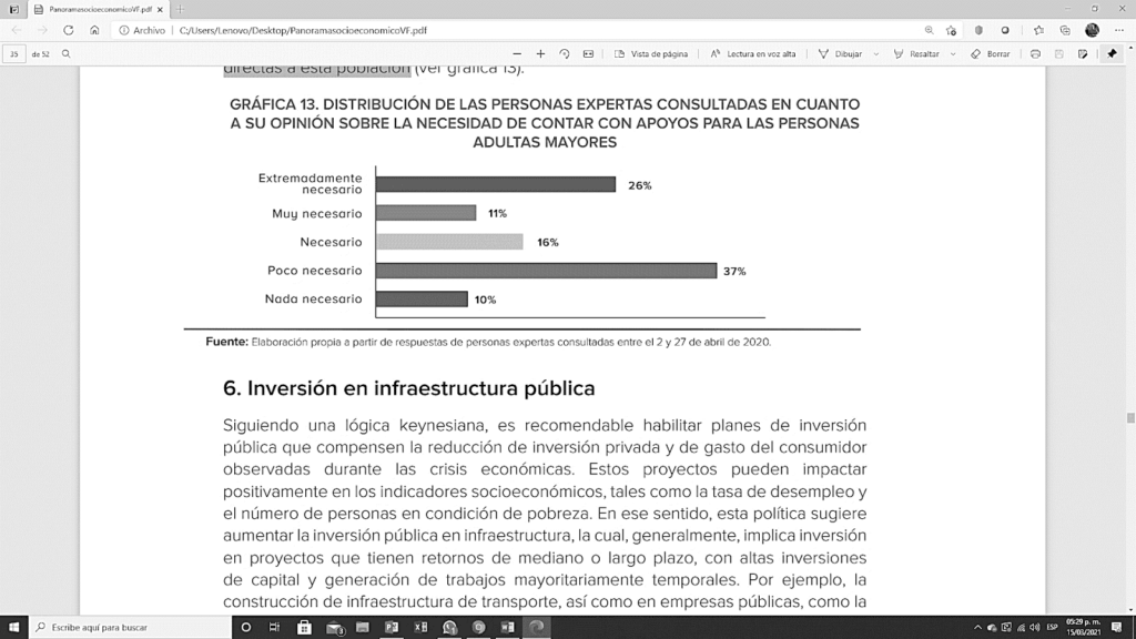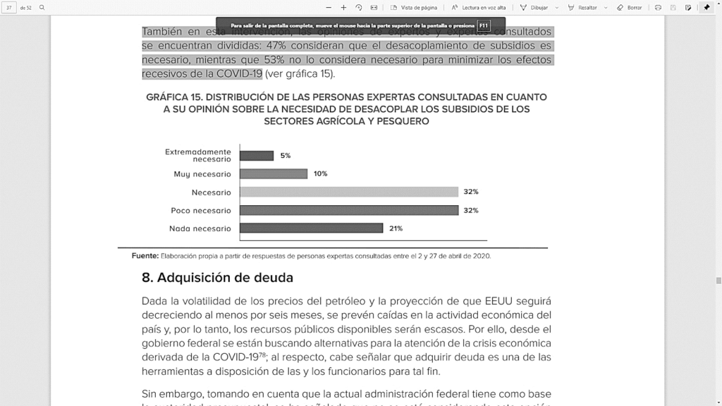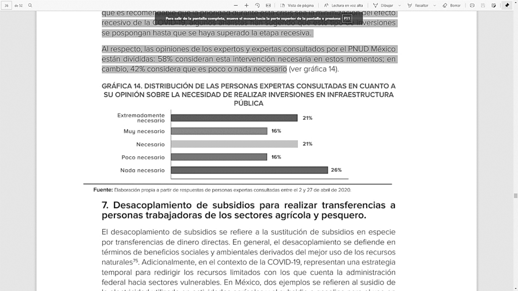 Al respecto, las opiniones de los expertos y expertas consultados por el PNUD México están divididas: 58% consideran esta intervención necesaria en estos momentos; en cambio, 42% considera que es poco o nada necesario.
