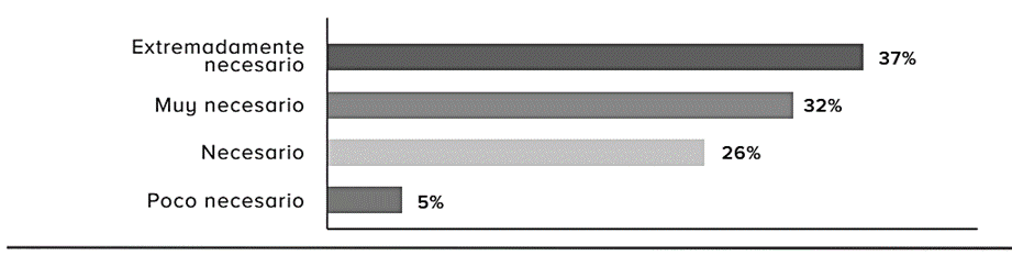 Cabe señalar que esta política plantea atender únicamente a las y los trabajadores del sector informal que no reciben apoyo por pertenecer al 30% de los hogares más pobres. Al respecto, todas las personas consultadas consideraron necesaria la transferencia directa a personas trabajadoras del sector informal; cerca de la mitad (47%) consideró que es extremadamente necesario.