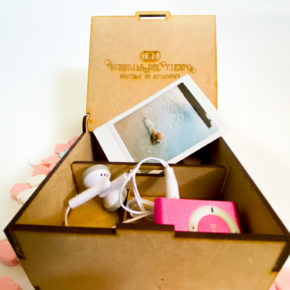 Este regalo está inspirado en las cápsulas del tiempo, donde guardábamos nuestros tesoros y artículos más preciados esperando a que en el futuro sea descubierto. Todo lo que contiene esa cápsula habla de lo que era y representaba esa persona.