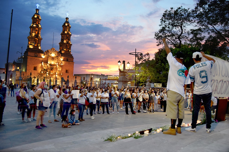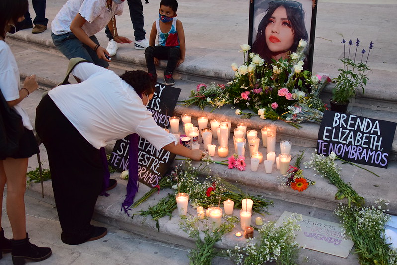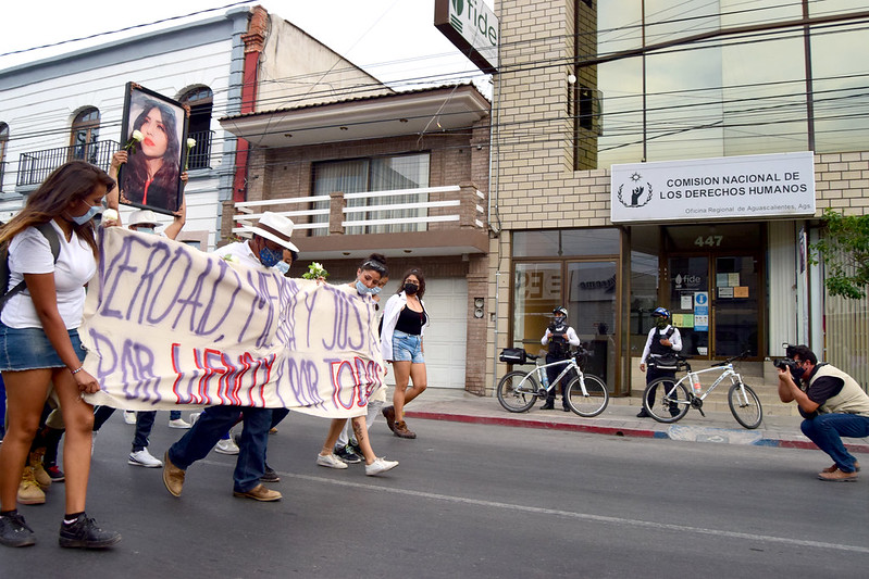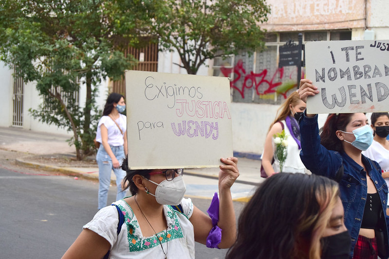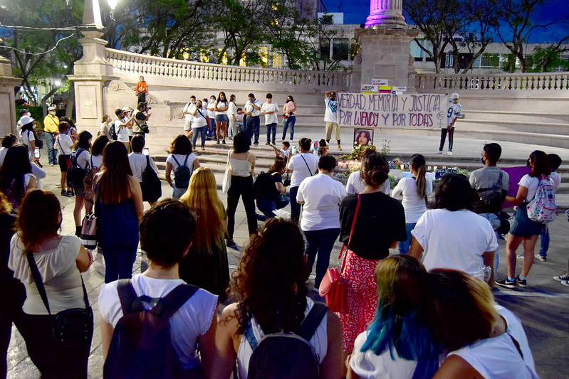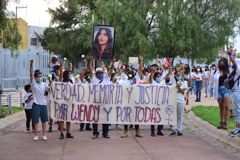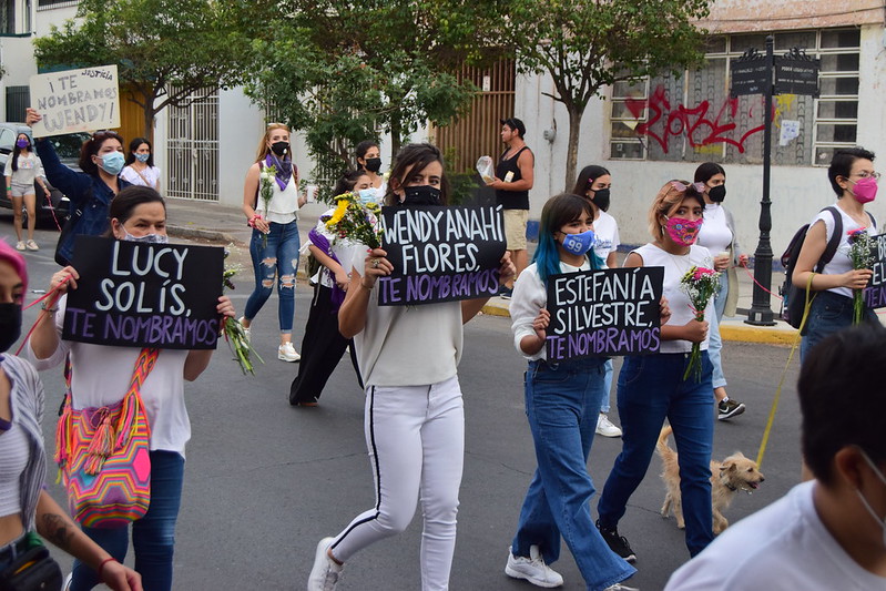 Familiares, amigos y comunidad en general participaron en una marcha en silencio en memoria de Wendy Anahí y las mujeres que han sido víctimas de feminicidio en Aguascalientes, organizada por la colectiva Las Nombramos y Brigada Centinela.