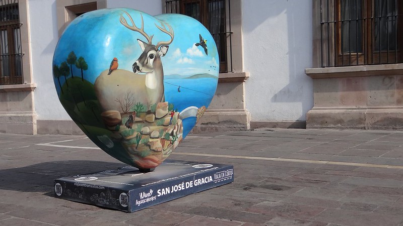 Los pueblos mágicos no escapan a esa realidad. Estos que son representados en esta exposición que con el título de, El latido de los pueblos mágicos del Centro Occidente, compuesta por 34 corazones reproducidos en fibra de vidrio como un recurso manido y que hacen de lienzo pictórico, pertenecientes a los estados de Aguascalientes, Guanajuato, Jalisco, Querétaro, San Luis Potosí y Zacatecas, han sido pintados por artistas y artesanos de esos lugares.