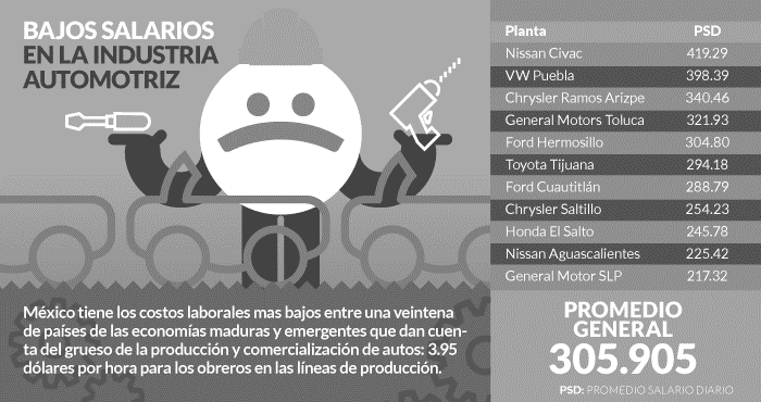 Así, hay que salir de las naciones con salarios bajos como México, país que participa activamente en la industria automotriz, pero donde el salario de sus trabajadores es el más bajo entre 18 países.