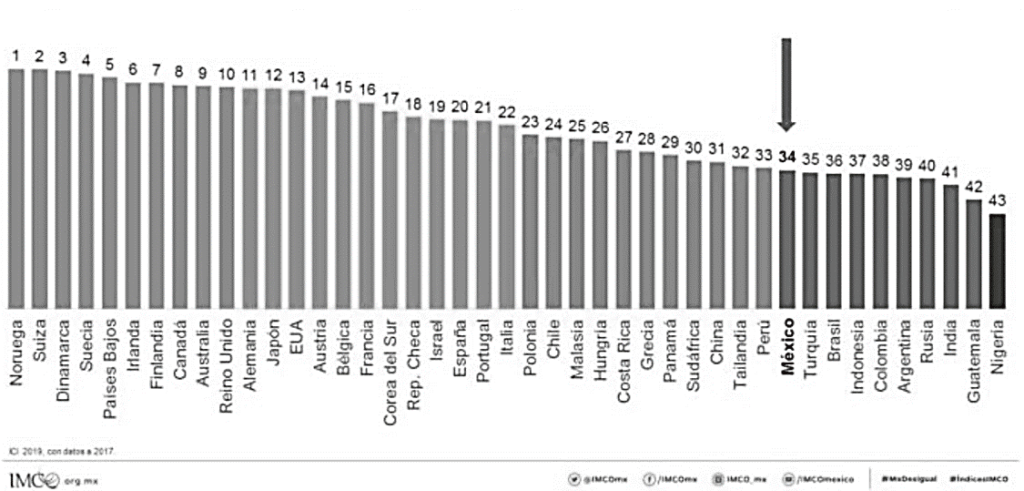 Los resultados generales favorecen a la CDMX que con 67.27 puntos, la única con una calificación del todo aprobatoria, y en la escala internacional semejante a España. Le siguen, con 60 puntos o menos: Nuevo León, Querétaro, Coahuila y Jalisco; con calificaciones cercanas a las de Chile, Costa Rica, Uruguay y Panamá. Estados como Guerrero, Chiapas o Oaxaca, logran puntuaciones menores a 40 puntos como El Salvador, Paraguay y Bolivia. El estado de Sinaloa subió 7 lugares para llegar al séptimo lugar nacional.