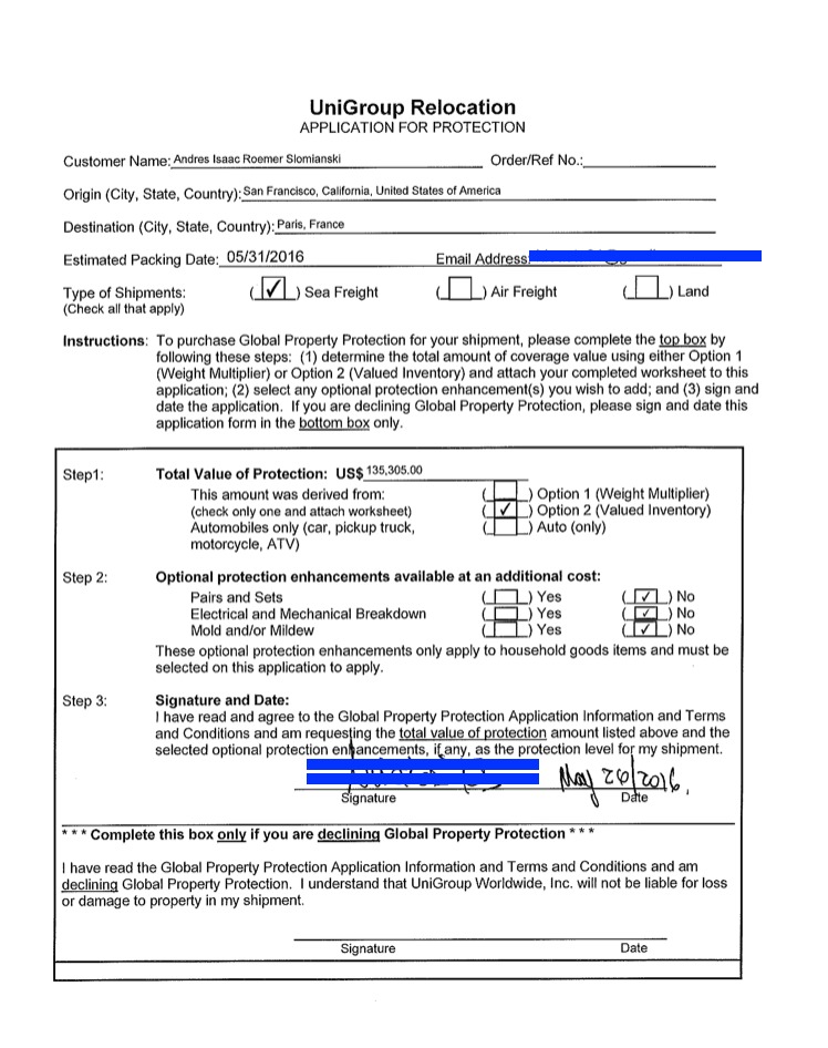 La mudanza por mar, de Estados Unidos a Francia, dejó estragos en al menos ocho objetos trasladados. El ajetreo afectó una mesa, un plato, una lámpara, una cuchara, una jarra de arcilla, un guardarropa de madera y un Ipod que no apareció entre las maletas. El costoso piano personal de Andrés Isaac también resultó dañado.