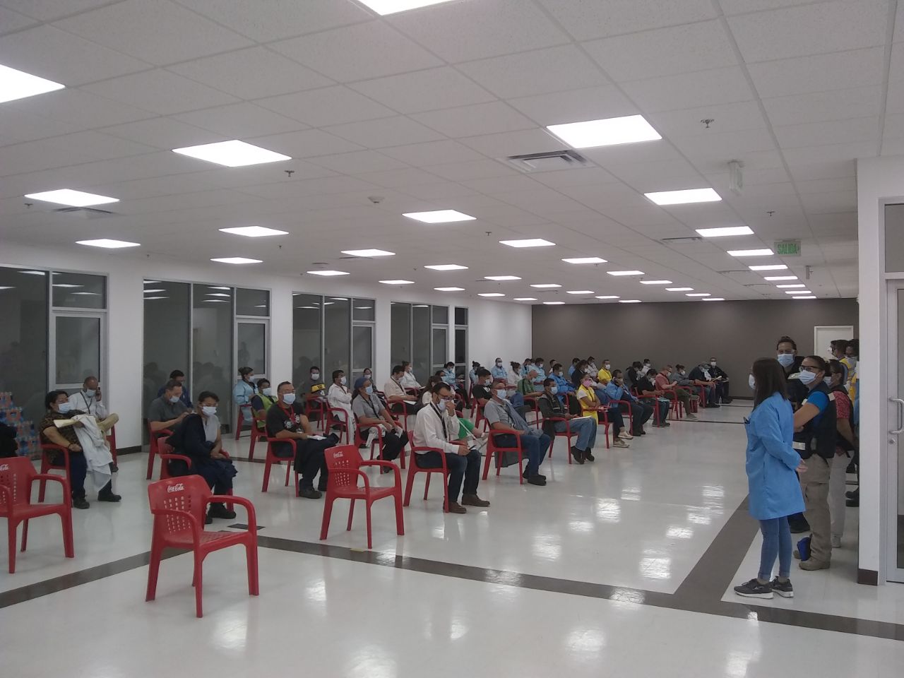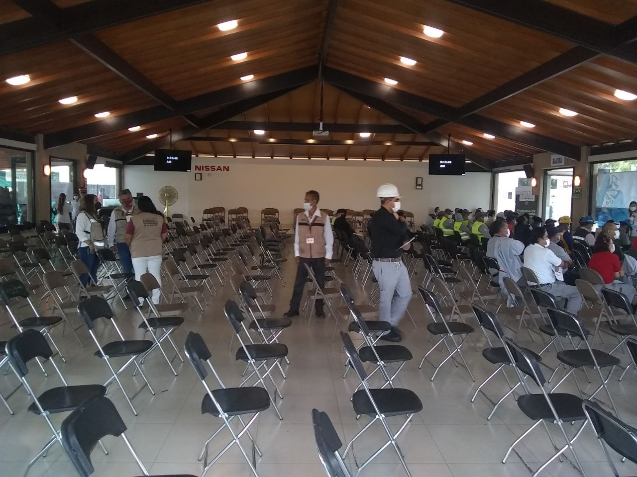 Ahora ya se ve así la zona de observación del centro de vacunación en Nissan 1, con la llegada de más personas que desean ser vacunadas contra la COVID-19.