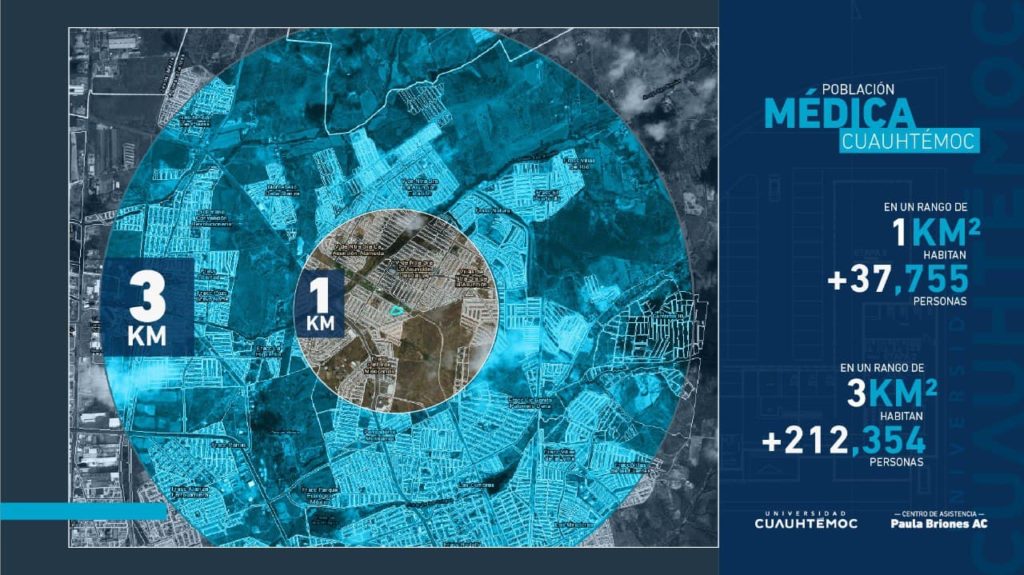 La tercera etapa marcaría la consolidación de la clínica con la construcción de una torre que contará con un quirófano para procedimientos ambulatorios, que permitan al paciente mantenerse en observación por algunas horas y ser dados de alta el mismo día (cirugía de corta estancia). Contará con un área de enseñanza y otras en las que un número reducido de alumnos puedan tomar algunas asignaturas y, además, puedan ofrecerse cursos de capacitación, desarrollo humano y/o actividades lúdicas y artísticas a los habitantes de la zona. Médica Cuauhtémoc ocupará un terreno de poco más de 4,000 m², ubicado en Avenida Poliducto, esquina con Cristóbal de Torres, frente al Polideportivo Línea Verde y la Alberca Municipal, en Villas de Nuestra Señora de la Asunción. El terreno fue otorgado en comodato por la Alcaldía de Aguascalientes, al contar con la aprobación de los vecinos y después haber cumplido con los lineamientos de la Secretaría de Desarrollo Urbano, así como con la normatividad aplicable ante sus distintos comités y comisiones; después de someter el proyecto ante el H. Cabildo, fue autorizado por sus integrantes al considerar que traerá beneficios a la población