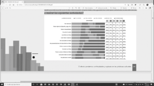 Es interesante notar la poca dedicación que tuvieron la TV y la radio. Hace más de 15 años, en la Encuesta Nacional de Prácticas y Consumo Culturales de 2004, la audiencia de más de 5 horas de consumo de radio fue el 12.4%, en tanto que en la encuesta presente fue el 7.4%. Con respecto a la TV, el mencionado estudio de 2004 señaló que los consumidores de más de 5 horas era 19.7% y en esta encuesta 7.6%. La diferencia puede deberse a la mayor oferta de bienes culturales en línea y/o a la pobre programación de estos medios.