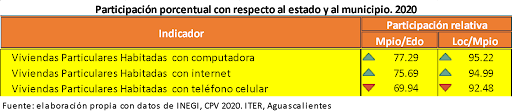 En el estado de Aguascalientes y de acuerdo con el Censo General de Población y Vivienda 2020, tenemos que en el 93% de las viviendas Particulares Habitadas (VPH) se cuenta con telefonía celular; en el 61%cuentan con servicio de internet y en el 46% se cuenta con computadora. De esto se desprende que es representativo de Aguascalientes el consumo cultural descrito por la ENHCC durante la pandemia debido a la presencia en la entidad de las Tecnologías de la Información y la Comunicación TIC’s, particularmente en la capital.