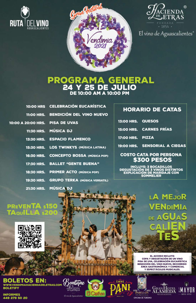 Como parte de la Ruta del Vino, Hacienda de Letras brinda distintos festivales durante todo el año, uno de ellos es el Festival de la Vendimia, que abre paso a la cosecha y a la elaboración del vino nuevo.