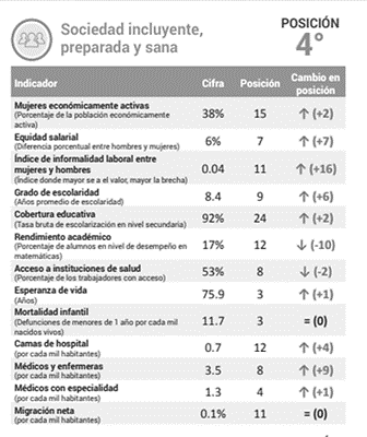 Uno de los temas en los que Aguascalientes ha logrado superar su posición anterior es en Sociedad incluyente, preparada y sana.