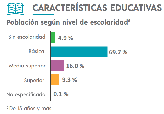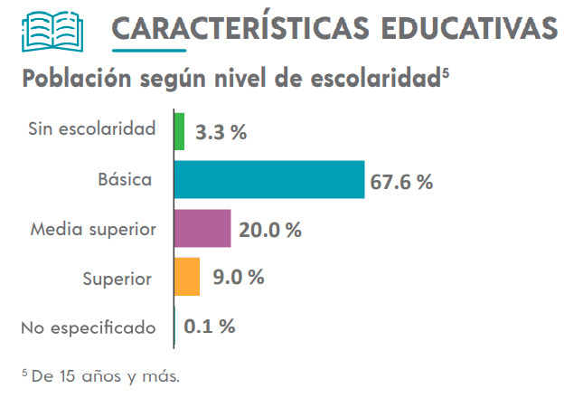 El 69.7% de la población de la capital cuenta con nivel de escolaridad básico.
