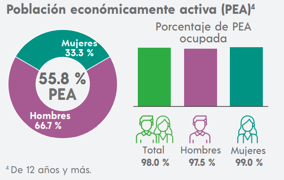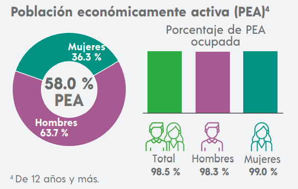 En características económicas, la población económicamente activa de Calvillo es de 58.0%.