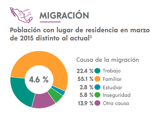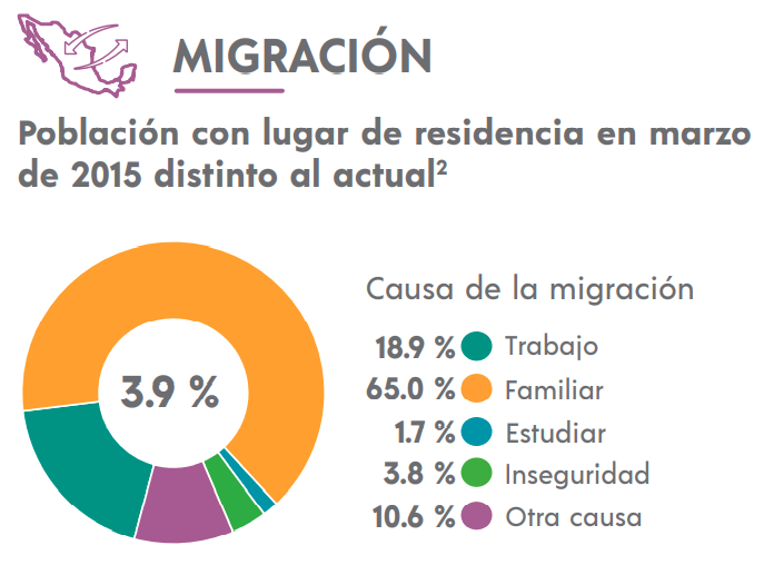 En cuanto a migración, al igual que en Asientos, y a diferencia de la capital done la causa principal de migración es por trabajo, en Calvillo la principal causa es familiar con 55.1%.