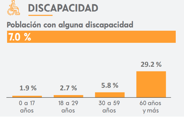 La mayor población en Calvillo con alguna discapacidad es la de 60 años y más, con 29.2%.