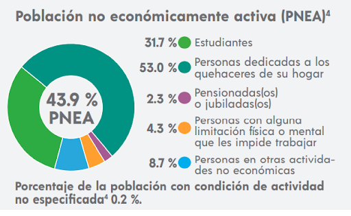 La población más amplia no económicamente activa de Calvillo corresponde a las personas dedicadas a los quehaceres de su hogar, con 53.3%.