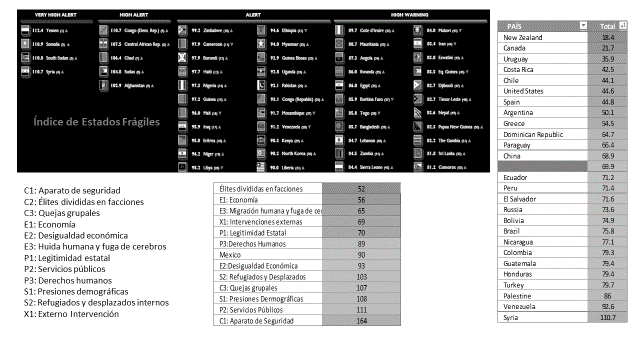 Una vez calculados estos factores, la evaluación da como posible resultado la “vulnerabilidad de los Estados al colapso”.