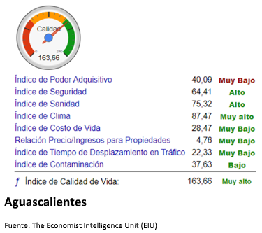 Hay ciudades de menor tamaño como Aguascalientes y Querétaro que empiezan a ser valoradas por encima de los 150 puntos, que las equipara a Toronto y Montreal en Canadá, lo que pudieran dar pauta para convertirlas en ciudades que teniendo una alta calidad de vida se vuelvan atractivas para el retiro de pensionados venidos de Europa y Norteamérica.