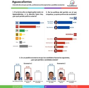 La empresa que otorga mayor ventaja al empresario, es Factométrica con 23 puntos porcentuales, de esta manera acumula un 45 por ciento de las preferencias entre todos los posibles candidatos. Además, los datos reflejan su competitividad frente a quienes han expresado su interés de obtener la candidatura por el Partido Acción Nacional (PAN).