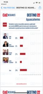 Con 17 puntos porcentuales frente a su más cercano competidor, Campaign and Elections, da una clara ventaja al ex candidato a la Presidencia Municipal de Aguascalientes, en total con una aceptación del 27 por ciento. Arturo Ávila encabeza todas las listas de preferencias, en segundo lugar, aparece Aldo Ruiz y en tercer sitio, Nora Ruvalcaba.