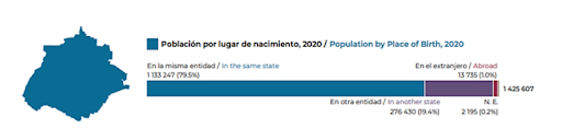 De acuerdo con el censo del 2020, a nivel nacional, se tiene a 1,212,252 habitantes nacidos en otros países: casi el 1% de la población total del país. La población nacida en el extranjero residente en México procede mayoritariamente de EUA; sin embargo, las personas nacidas en otros países se han incrementado de 149,026 en 2000 a 414,986 en 2020.