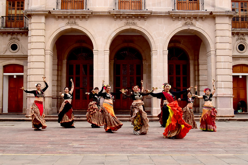 El 8 de octubre se celebra en el ámbito internacional un flashmob, una representación del baile en espacios públicos y miembros de la comunidad fat chance belly dance en Aguascalientes presentaron frente al Teatro Morelos su baile a fin de grabar un video y tener tiempo para realizar la edición y presentarlo el próximo viernes 8.
