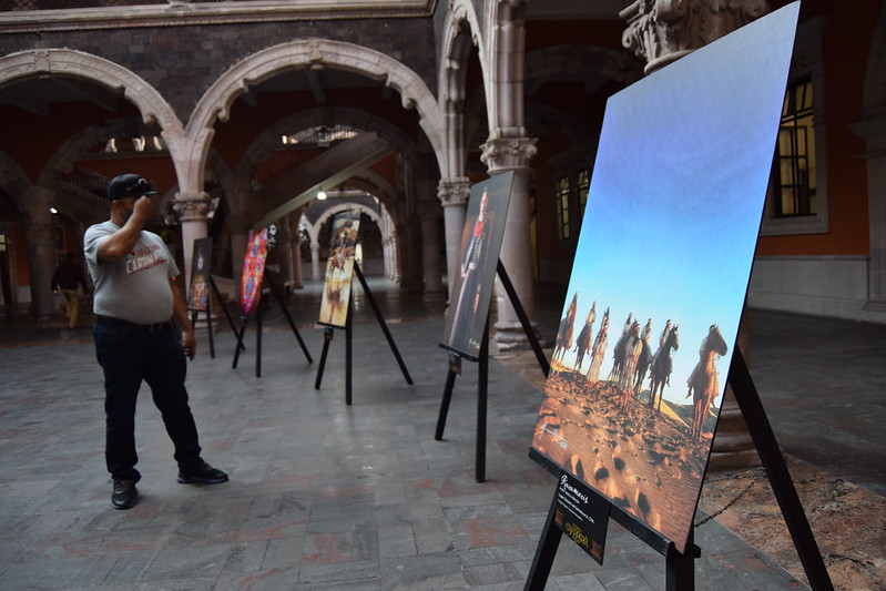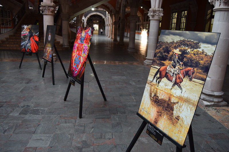 En el primer patio del Palacio de Gobierno se muestra el trabajo fotográfico de Marco Antonio Alarcón Ramírez, quien desde 2008 se adentró en el mundo de la charrería y encontró en toda la tradición, el color, el movimiento, la fuerza y la valentía de los hombres y mujeres a caballo el ambiente para capturar los momentos del llamado deporte mexicano por excelencia. En 14 impresiones se observan las suertes charras, retratos de generaciones charras y los finos detalles de las vestimentas de las escaramuzas con un retoque de imagen que exalta el impacto de cada imagen.