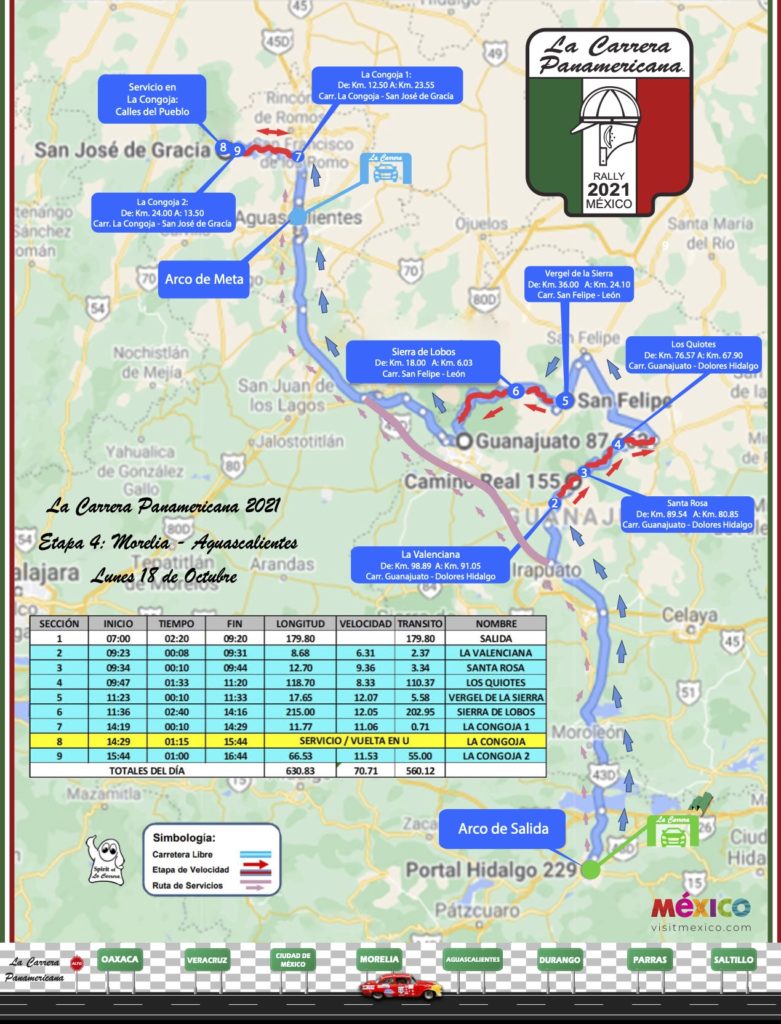 Carlos Cordero, director de la Carrera, anunció oficialmente que recorrerán las carreteras de Aguascalientes el 18 de octubre, ruta diseñada para recorrer más de 3 mil 610 kms con más de 625 kms de etapas de velocidad, iniciando el camino por La Congoja a las 13:00 horas, con más de 79 kms recorridos, para después seguir su tránsito de exhibición por Aguascalientes, arrancando por Blvd. a Zacatecas, primer anillo y Av. Héroe de Nacozari hasta llegar a Tres Centurias, por la calle 28 de Agosto, en el Barrio de la Estación en un horario aproximado de llegada a las 17:00 horas.