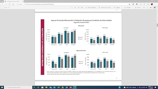En relación con los trabajadores informales del país los ocupados en el mercado informal aguascalentense obtiene mejores ingresos que los del promedio nacional. Pero es notable que en el mercado formal de Aguascalientes la situación es inversa: obtienen menos que el promedio de los trabajadores formales mexicanos.