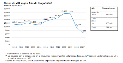 Morbilidad: De 2010 a julio de 2021 han sido diagnosticados 150 051 nuevos casos de VIH, siendo 2018 el año de mayor prevalencia con 17 429 casos.