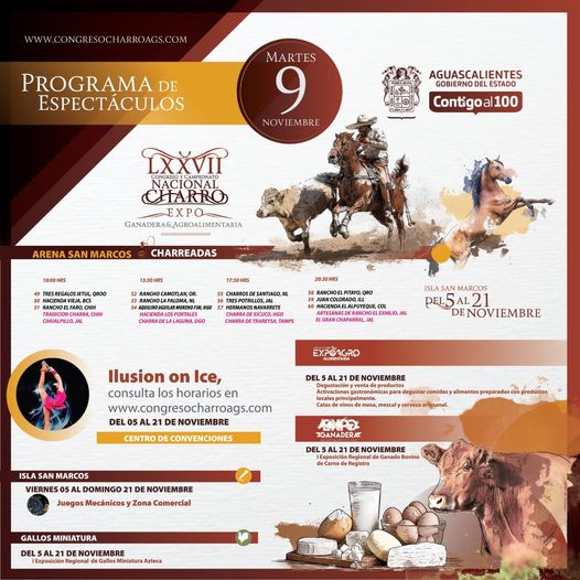 Programa de actividades de hoy martes 9 de noviembre en el Festival Charro de Aguascalientes