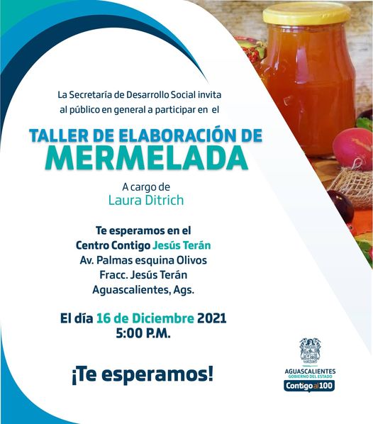 La Secretaría de Desarrollo Social a través de sus redes sociales publicó una invitación al público en general a participar en el taller de elaboración de mermeladas en el Centro Crecer ubicado en el fraccionamiento Jesús Terán.
