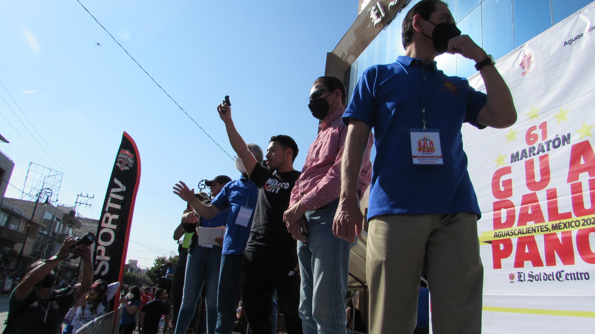 El Director General del Instituto del Deporte del Estado de Aguascalientes, Manuel Aceves Rubio y el atleta olímpico aguascalentense Jonathán Muñoz, dieron el banderazo de salida del tradicional Maratón Guadalupano en su sexagésima primera edición.