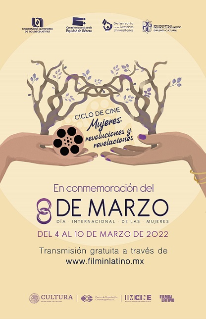 La Universidad Autónoma de Aguascalientes a través de Cinema Universidad y el Comité Institucional para la Equidad de Género de la institución se encuentra preparando el ciclo Mujeres: revoluciones y revelaciones, una semana de exhibición cinematográfica en línea para conmemorar el 8 de marzo, Día Internacional de la Mujer.