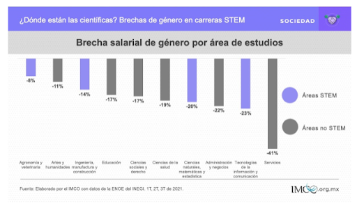 Al llegar al mercado laboral, las mujeres que estudiaron carreras STEM tienden a ganar más y enfrentan una brecha salarial menor: 18% en contraste con 22% para profesionistas de otras áreas. En parte, la brecha salarial en STEM se explica por el tipo de trabajos que elige cada sexo. Las mujeres tienen mayor probabilidad de ser oficinistas o dar clases, mientras que los hombres tienden a ocupar puestos en plantas industriales.