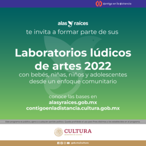 La Secretaría de Cultura, a través de Alas y Raíces MX, te invita a formar parte de la Programación cultural y de los Laboratorios lúdicos de artes 2022.