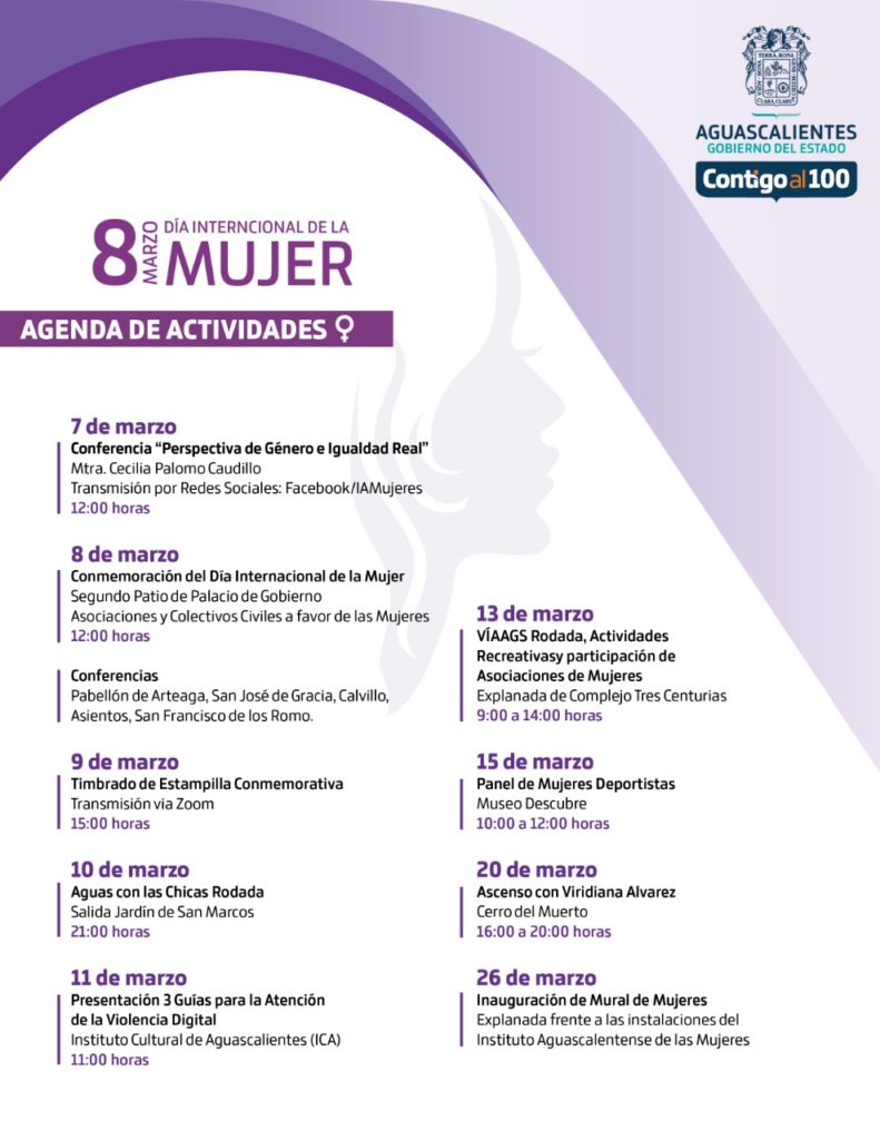El 10 de marzo se participará en la rodada nocturna organizada por “Aguas con las chicas”; el viernes 11 de marzo, se efectuará la presentación “Tres Guías para la Atención de la Violencia Digital”, a las 11:00 horas en el Instituto Cultural de Aguascalientes.