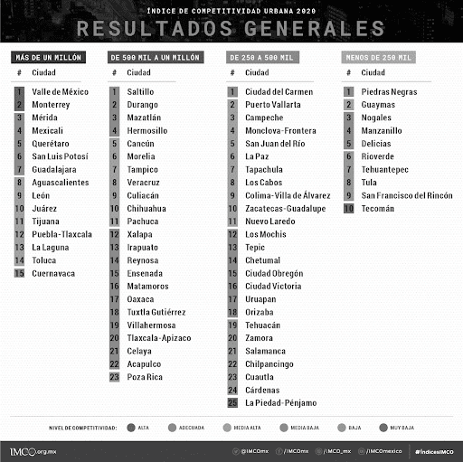 Además, del estudio emitido por el Instituto para la Economía y la Paz (IPC), también se toman en cuenta los datos expuestos por el Gabinete de Comunicación Estratégica, en su Estudio Ciudades más Habitables. De ese estudio se toman una serie de factores para determinar las mejores ciudades de México.